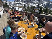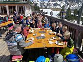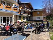 Da unsere beliebte Familien-Skifreizeit in diesem Jahr auf den Zeitraum vom 19. - 26. April fiel, hatten wir im Vorhinhein einige Bedenken in Bezug auf die Schneelage im Skigebiet. Des weiteren hatte die Wettervorhersage ab dem dritten Tag Regen vorhergesagt. Erstaunlicherweise wurde es nicht so schlimm, wie zu befürchten war. Es lag noch ausreichend Schnee auf den Pisten und auch der angekündigte Regen hielt sich doch deutlich in Grenzen. Die ersten zwei Tage zeigte sich die Sonne von ihrer besten Seite und die 5 Erwachsenengruppen sowie die 6 Kinder- und Jugendgruppen hatten viel Spaß im Skigebiet. Am Freitag hatte es sogar einige cm Neuschnee gegeben. Nachmittags, nach dem Skifahren, konnten wir die ersten Tage wieder gemütlich auf der Sonnenterrasse des "Forellenhofes" sitzen und Abends hatten wir, wie immer, viel Spaß und beste Unterhaltung. Am Freitag bekamen dann viele Kinder weitere "Leitungsaufkleber" und jedes Kind erhielt eine Urkunde als Erinnerung an die Teilnahme.